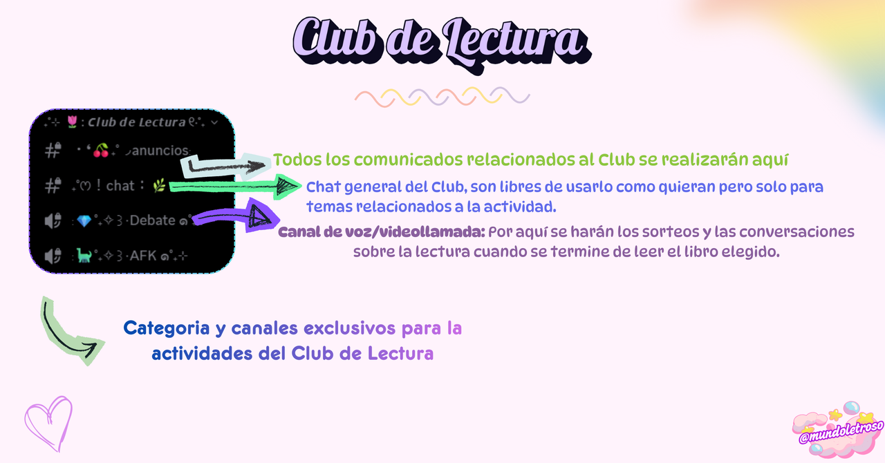 Te invitamos a participar de nuestro Club de Lectura, un evento mensual pensado para compartir libros, charlas y opiniones en un ambiente relajado y cercano, exclusivamente dentro de nuestro servidor de DC.