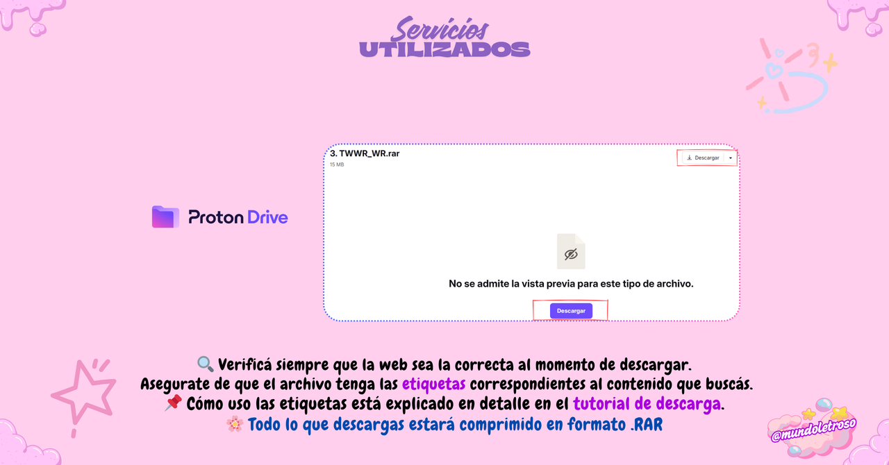 No utilizar palabras prohibidas → 𝘛𝘶𝘵𝘰𝘳𝘪𝘢𝘭 𝘥𝘦 𝘥𝘦𝘴𝘤𝘢𝘳𝘨𝘢𝘴, 𝘥𝘦𝘴𝘤𝘢𝘳𝘨𝘢𝘴, 𝘋𝘪𝘴𝘤𝘰𝘳𝘥, 𝘦𝘵𝘤.